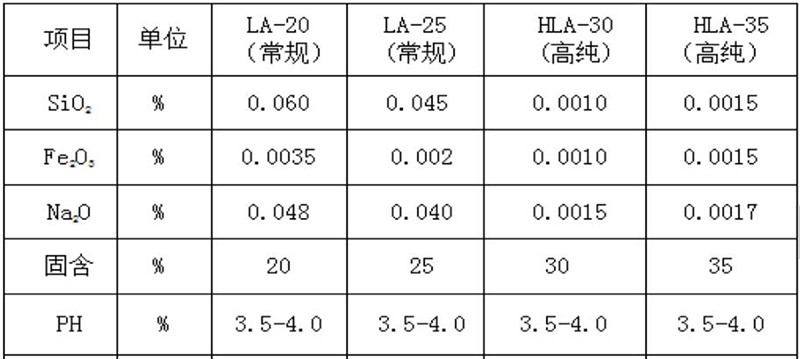 Can be widely used in petrochemical catalysts, forming binders for high temperature resistant materials such as aluminum silicate fibers and ceramics, additives for ceramic enamel glazes, antistatic agents for texturing and electrostatic flocking, textiles and fiber products Treated film formers and antistatic agents, cast alumina castables, emulsifiers and stabilizers for pigments and coatings, photographic paper surface treatment agents, greenhouse antifogging agents, water repellants, etc.
